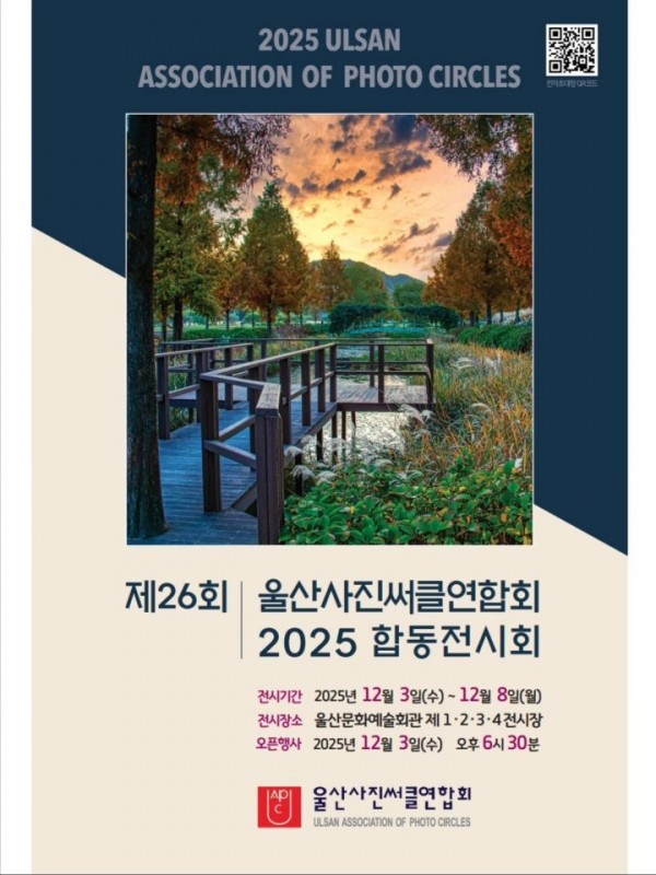 제26회 울산사진써클연합회 합동 전시회 작성자 정보 운영자 작성 작성일 2025.12.01 19:08 컨텐츠 정보 244 조회 목록 본문 울산사진써클연합회 합동 전시회기간:12월3일(수)~12월8일(월)장소:울산문화예술회관 제1,2,3,4전시장오픈행사:12월3일(수)18시30분 관련자료 이전 제39회 현대자동차 사진동우회 회원전 작성일 2025.12.04 11:18 다음 문수조류탐사회 제2회 회원전 작성일 2025.11.24 21:53 댓글 0 등록된 댓글이 없습니다. 로그인한 회원만 댓글 등록이 가능합니다. 목록