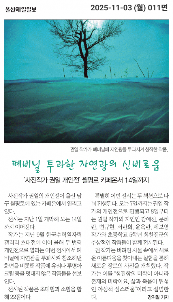 권일 자문위원 개인전 작성자 정보 운영자 작성 작성일 2025.11.03 13:40 컨텐츠 정보 107 조회 목록 본문 권일 자문위원 개인전장소:카페온(울산 남구 월평로191)일시:11월3일~14일 관련자료 다음 이병록 회원 20번째 개인전 안내 작성일 2025.10.29 12:42 댓글 0 등록된 댓글이 없습니다. 로그인한 회원만 댓글 등록이 가능합니다. 목록