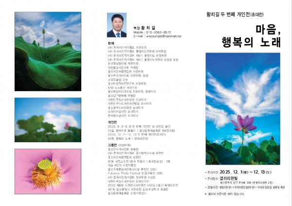 황치길 자문위원 두 번째 개인전(초대전) 작성자 정보 운영자 작성 작성일 2025.11.25 14:30 컨텐츠 정보 252 조회 목록 본문 황치길 자문위원 두 번째 개인전(초대전)기간 :11월 25년12월01일~12월13일장소 : 갤러리 한빛 관련자료 이전 조춘만 (사진전 생성·해체·환원의 미학) 사진전 작성일 2025.12.04 11:19 다음 권일 자문위원 개인전 작성일 2025.11.03 13:40 댓글 0 등록된 댓글이 없습니다. 로그인한 회원만 댓글 등록이 가능합니다. 목록