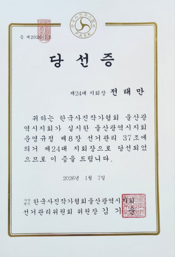 제24대 지회장 당선자 공지 작성자 정보 운영자 작성 작성일 2026.01.08 13:32 컨텐츠 정보 391 조회 목록 본문 제24대 지회장 후보 등록 결과 관련자료 이전 사협 울산지회 제59차 정기총회 안내 작성일 2026.01.09 15:04 다음 “2025년 문화예술회관초청 기획전시 야외조각과 설치작품전 전시연장” 작성일 2025.11.18 15:39 댓글 0 등록된 댓글이 없습니다. 로그인한 회원만 댓글 등록이 가능합니다. 목록